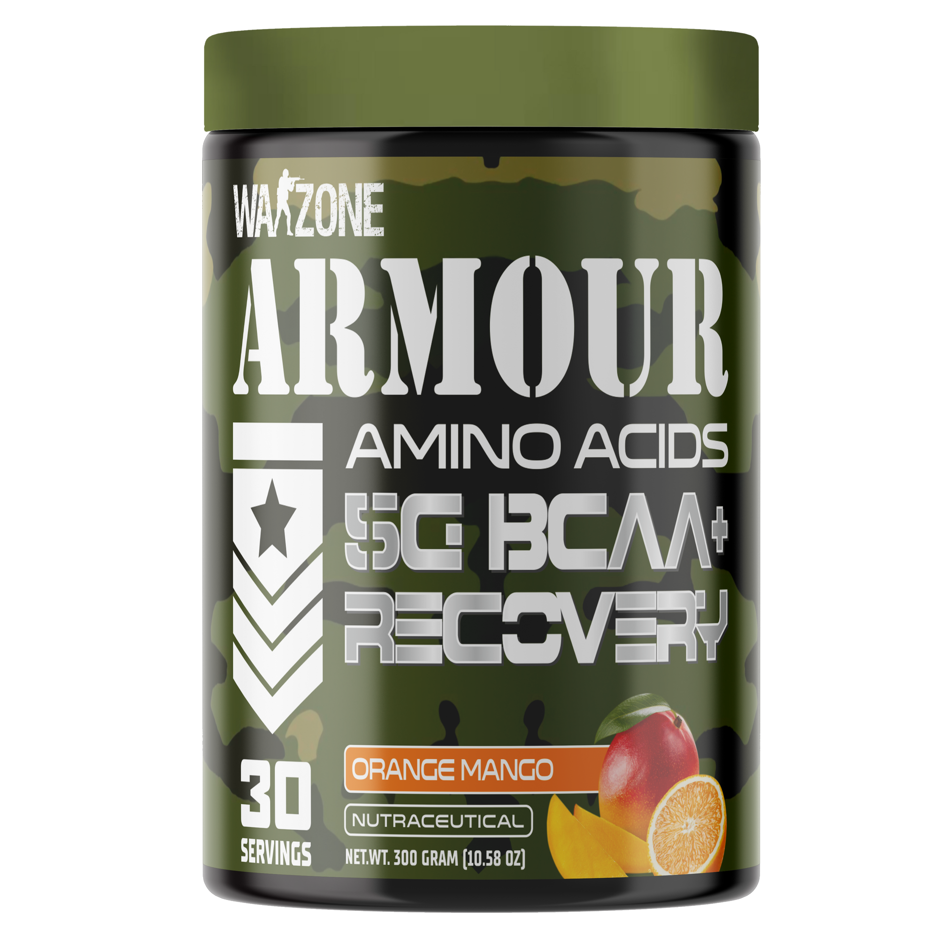 Warzone Nutrition Armour Amino Acid 5C BCAA+ Recovery acts as amino armour that provides all three “branched-chain amino acids” (BCAAs) in every serve. These agents are essential for the human body as it can’t produce them itself. This is hugely important as they are needed to support optimal muscle function and repair.