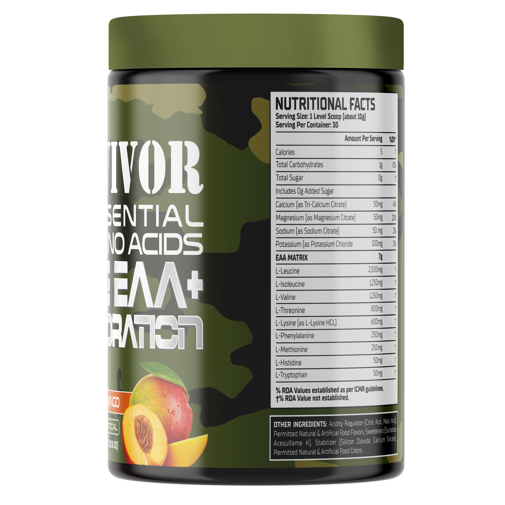 Mix 1 scoop of Survivor EAAs with 8-10 Oz of water, shake well, and consume.