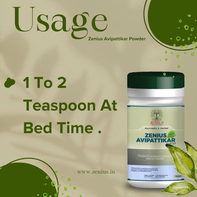 Zenius Avipattikar Powder: Relief from acidity and gas-related issues. Offers quick relief from atypical pain while improving digestion: is ideal for when an acidic stomach produces sensations of vomiting due to acidity. The powder protects the mucosa from acid ulceration and promotes healing from ulcers. Specifically addresses gastric ulcers, regulates excessive secretion of gastric juice, exerts demulcent action generating thick protective mucus to the stomach lining, and accelerates the healing processes of both gastric and duodenal ulcers.