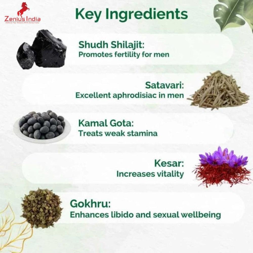 Zenius Men Charge Capsule is used to help manage the testosterone levels in the body and improve sexual function in men. It may also aid in strengthening your libido, promoting proper functioning of the overall function of the penish. It also contains Gokshura, a popular herb that is known to act as an aphrodisiac. It improves sperm count and improves sexual drive. It is also beneficial in the treatment of erectile dysfunction (impotence) due to its role in strengthening the penile tissue, boosting the blood flow to the reproductive organs, and helping to strengthen the penile tissue. Apart from this, it may also help to provide strength and stamina to the body and improve blood circulation to the reproductive organ by widening the blood vessels present in the penile area. It is an ayurvedic formulation that is commonly used to manage sexual dysfunction in men by improving sperm count and hormonal levels. It contains Kapikachhu, an Ayurvedic herb, that is known to improve the libido as well.