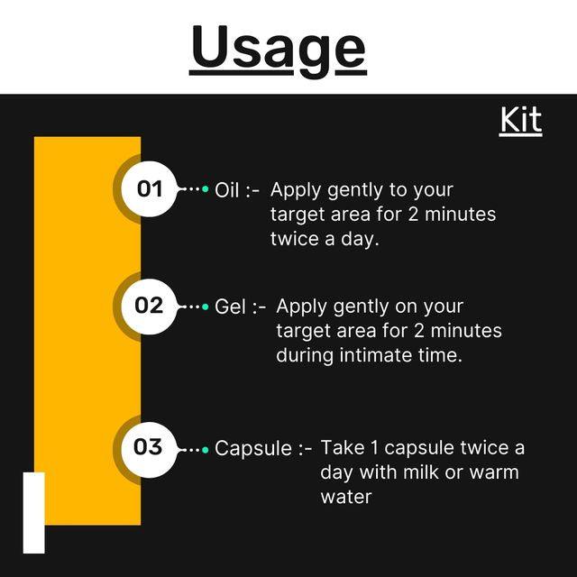 - Zenius Power UP kit Pack Of 60 Capsules + 50ml Oil + 50ml Gel.