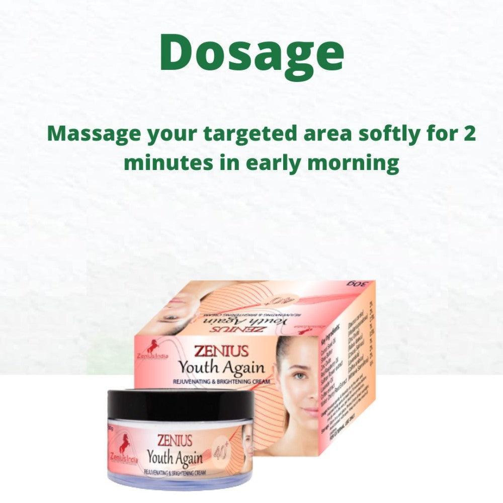Zenius Youth Again Cream is a type of moisturizer that is specifically designed for use on the face. It typically comes in a jar or tube and can be applied to the skin using the fingers or a facial brush. Face creams can be formulated for a variety of skin types and concerns, such as dry skin, oily skin, sensitive skin, and aging skin.