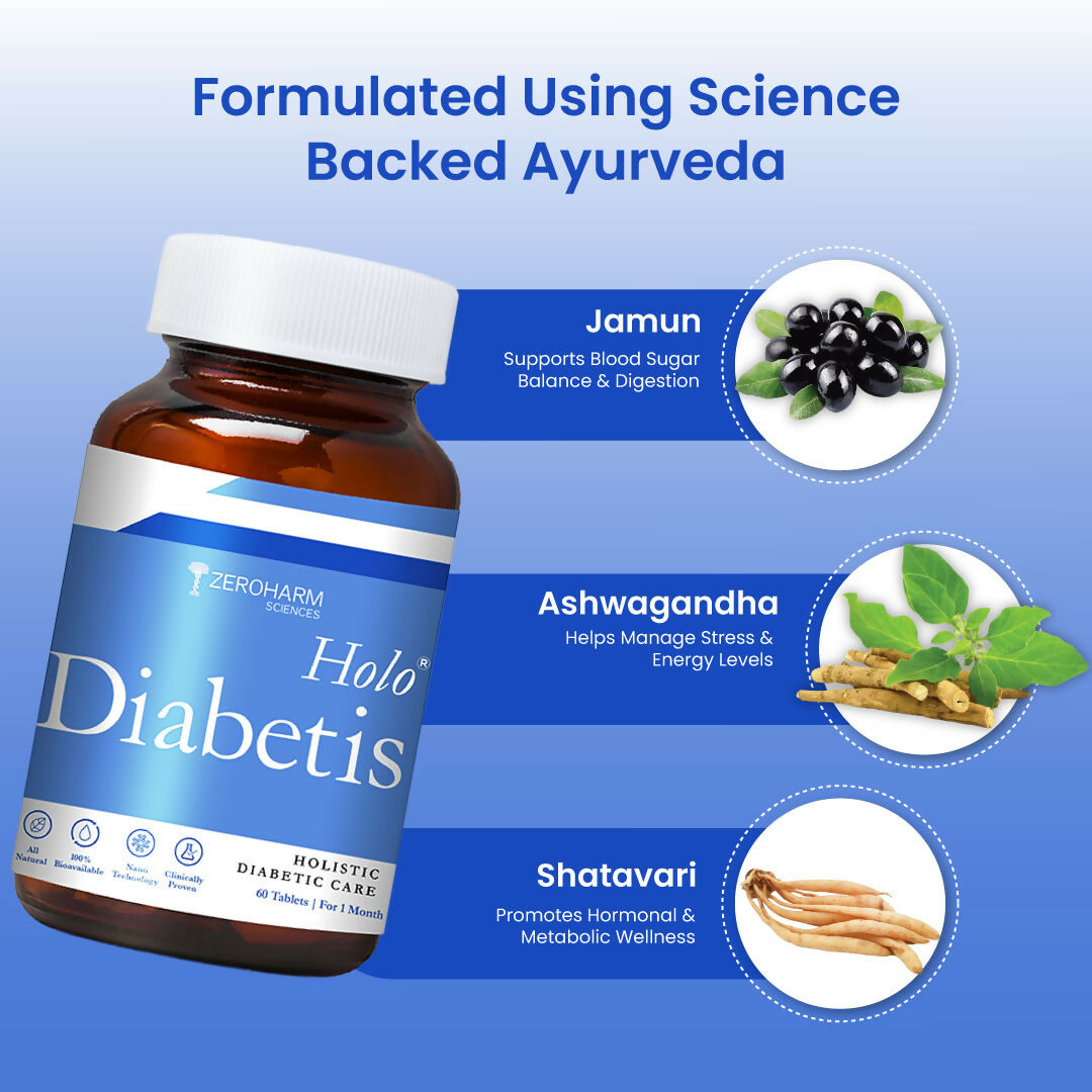 - ZEROHARM Holo Diabetis - With Jamun, Ashwagandha, and Shatavari - Supports Healthy Blood Sugar Levels for Men & Women - 60 Tablets