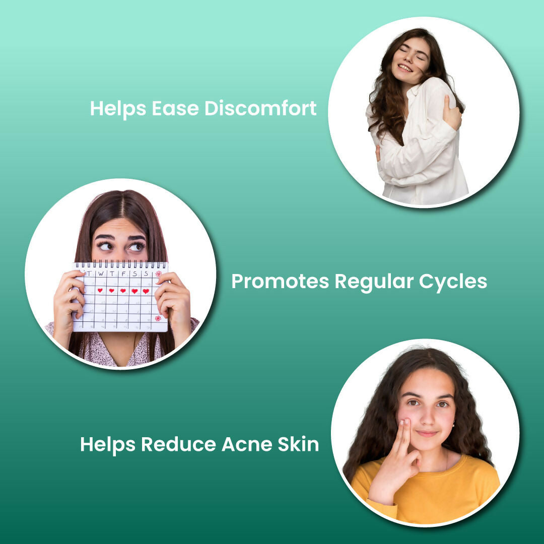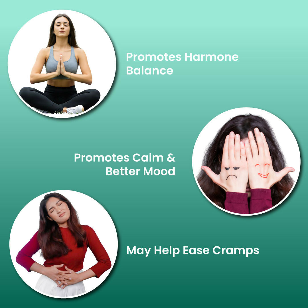 - It is used for regular periods, cramps, mood swings, acne and PMS relief